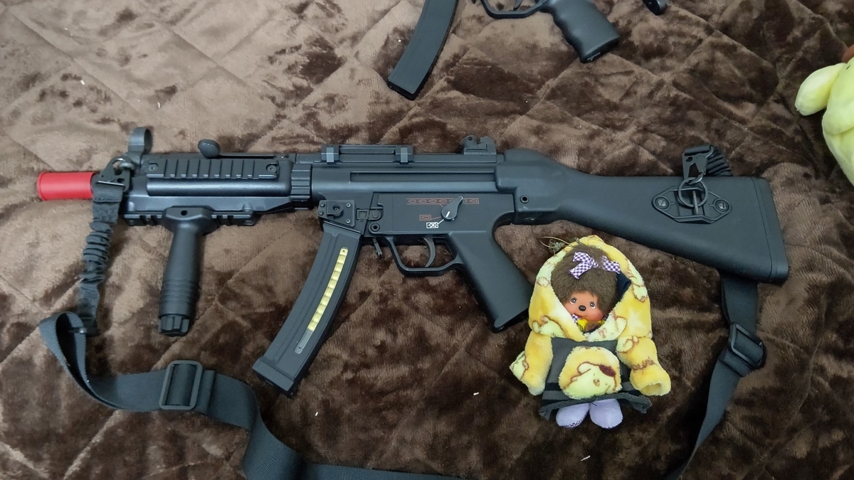 上にちらっと見えるのはマルイのエアコキ(ホップあり18禁)MP5です